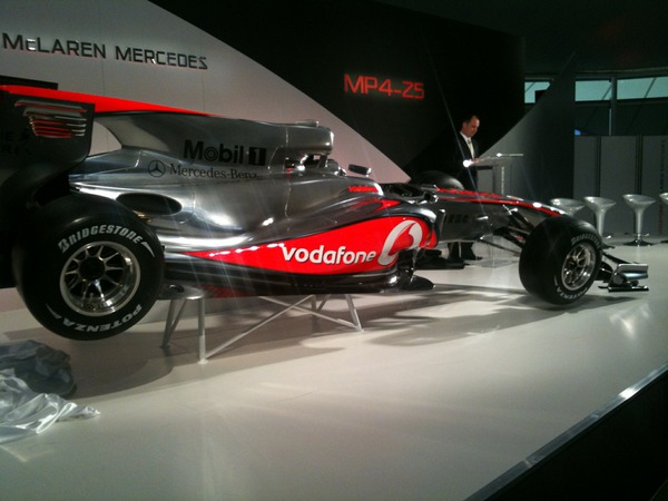 Once again that man Jake Humphrey is tweeting pics from the scene. More later, but while there’ll surely be a LOT of discussion of the MP4-25, it’ll be more about what’s under the paint job than the livery itself. Here it is, anyway:
